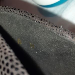 Brown suede wedge heels, round toe & tiny dots all over the shoe & heel. Heel is 2.5" high.