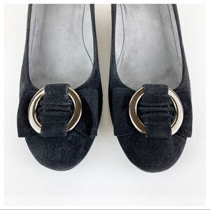 Stuart Weitzman Caring Black Suede Low Wedge Silver Ring Accent 8.5