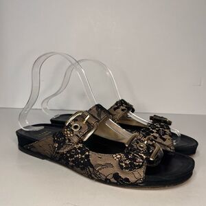 Stuart Weitzman takes off-duty fashion up a notch with the elegant lace Freely sandal.