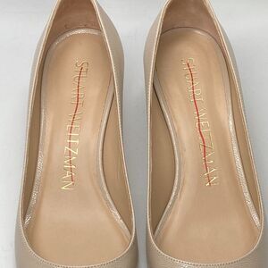 Elevated by a kitten heel, Stuart Weitzman’s Stuart pumps feature a pointed toe and leather lining.