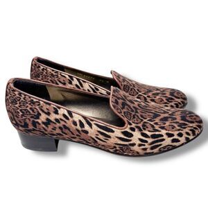 Stuart Weitzman Leopard Print Fabric Leather Trim Loafers Women’s Size 6.5 M