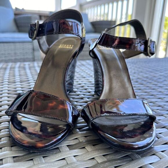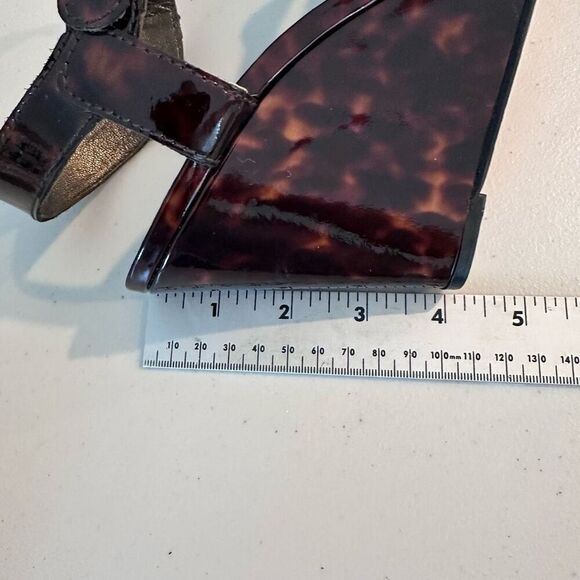 Stuart Weitzman Leopard Print Patent Leather Wedge Sandals Womens 8 Brown
