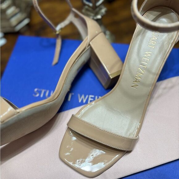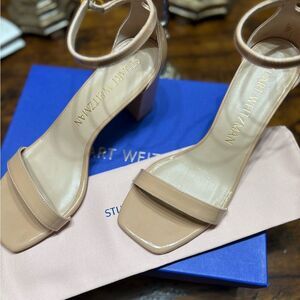Stuart Weitzman Nude Block Heel Sandals 9.5 NIB/Dust Bag $495
