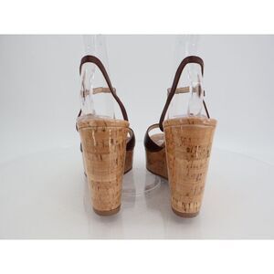 Stuart Weitzman Palmina Womens 9B Leather Platform Wedge Heel Sandals Brown