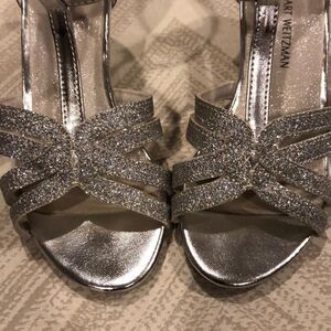 Stuart Weitzman Silver Glitter Girl Dressy Sandals