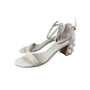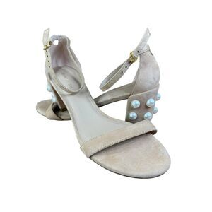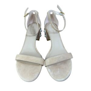 Stuart Weitzman Simple Pearl Block Heel Suede Sandals Nude Size 8