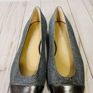 Stuart Weitzman Sleek Flat Gunmetal Silver Pewter Sparkle Glitter Flats NEW! Sz