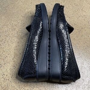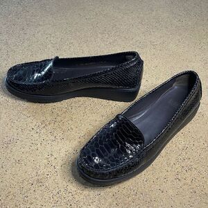 Stuart Weitzman Snake Embossed Patent Leather Moccasin Toe Loafers 7.5 Black
