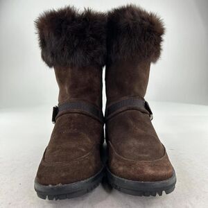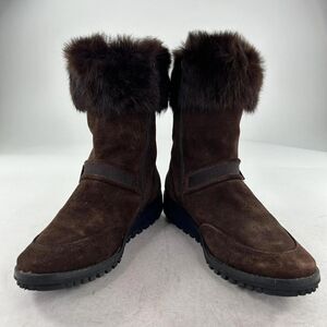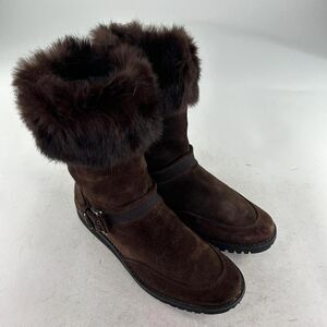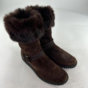 Stuart WeitzmanSuede Fur Trim Combat Boot US 8.5 Espresso Brown Midcalf Boots