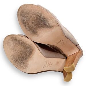 Stuart Weitzman Taupe Suede Peep Toe Stacked Cone Heel Booties Women’s Size 9.5