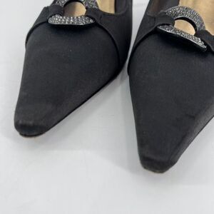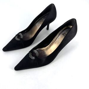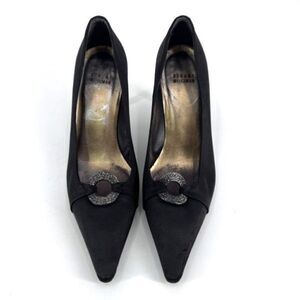 Stuart Weitzman Womens Embellished Rhinestones Satin Pointed Pumps Black Size 8W