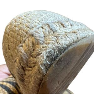 Stylish espadrille flats with black and tan stripes.