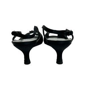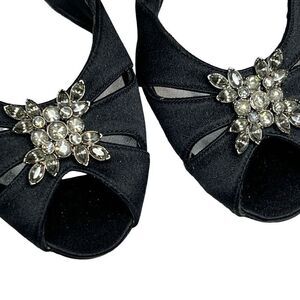 Stuart Weitzman black satin open toe rhinestone embellished heels size 8.5N