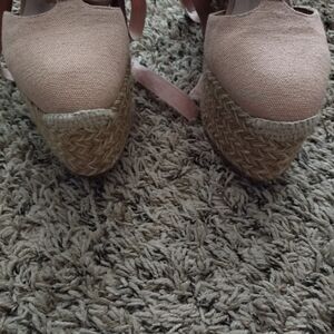 Stuart Weitzmen Canvas Espadrille Wedge lace up pink Sandals 37/6,5