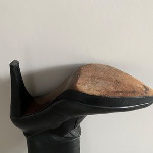 Gorgeous Stuart Weitzman Black Leather below knee boot. 5” heel. SOFT AS BUTTER feel. No zipper, clean lines, hidden platform of about 1”. The calf opening is 15” circumference (around) with some additional stretch available in slightly stretchy calf section. Paid $650. Worn 2x. Very comfortable and Gorgeous! Excellent condition.