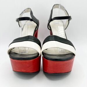 Stuart Weizmann Black Red and White Wide Strap Platform Sandals with Ankle Strap