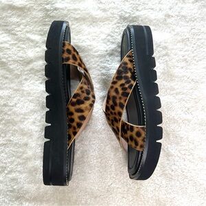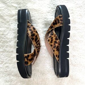 Roza Lift Chain Haircalf Sandal in cheetah haircalf and gold-tone hardware with chain trim