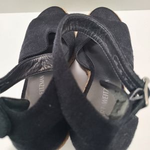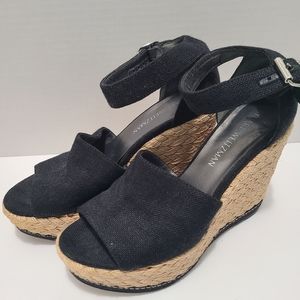 Stuart Weiztman Canvas Wedge Espadrille Sandal Black 7.5