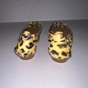 Stuart Wietzman Leather Animal Print Peep Toe Slip On Flats Shoes Women's 7.5 M.