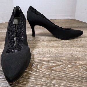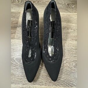 Stuart Wietzman Shoes Sz:7W Black Leather Sole/Fabric Lace Upper “Negligee”