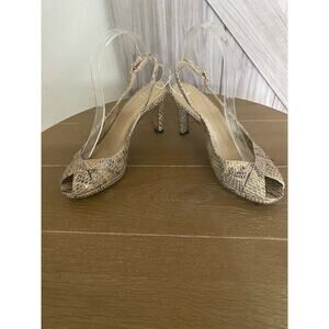 Buckle adjustable strap snake skin peep toe 1 heel cap is slightly turned
