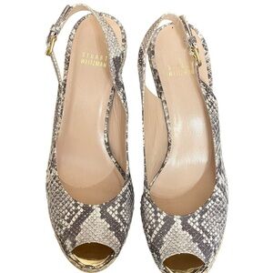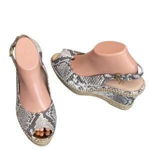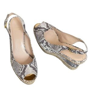 Stuart weitzman Beige Snakeskin Embossed Leather Espadrille Wedge Slingback 9.5M