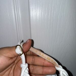 Only used 1 time in perfect condition has glue marks on the side of 1 shoe but straps covers it see pictures