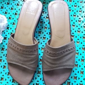stuart weitzman fabric sandal slides details: 2" heel, casual and polished silhouette size: 7 condition: gently pre-owned.