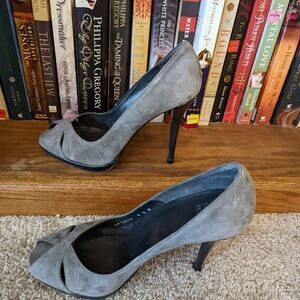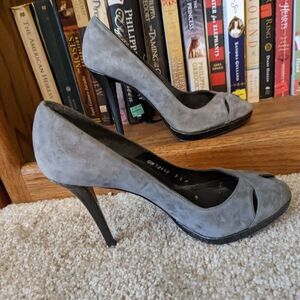Stuart weitzman grey suede peeptoe stilleto heels sz 8.5 euc