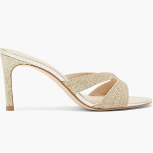 Dazzle with every step! These Stuart Weitzman shimmer glitter heels, crafted in Spain, are the perfect blend of elegance and sparkle. Slip into luxury with their open-toe design and comfortable leather lining.
