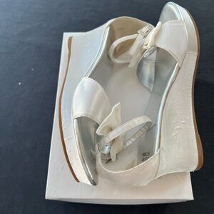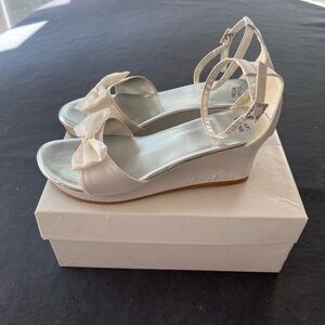 Stuart weitzman silver white satin heels prom size 6 girls size