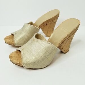 stuart weitzman wedge heel Leather sandals in newer condition with few defects see last pic for accuracy