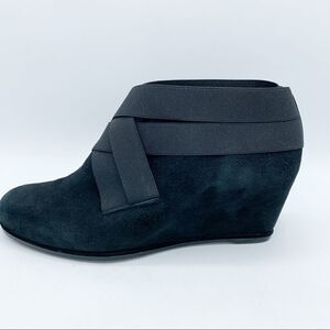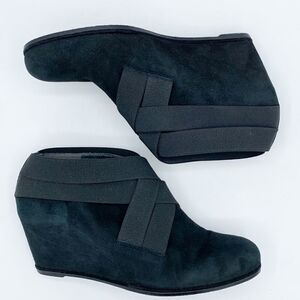 Stuart Weitzman Be Happy Black Suede Hidden Wedge Booties Criss-cross Elastic