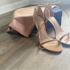 Chic beige heels with ankle strap. Sleek and stylish design. Ideal for any event. Brand new in a box. Size 38.