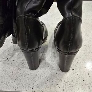 Stuart Weitzman Black Heeled Boots. Has signs of wear see photos. one boot is missing the rivet hardware see photo.
