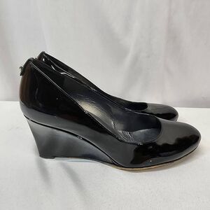 Stuart Weitzman Black Patent Leather Wedge Heel Pumps Women's Size 9 Round Toe