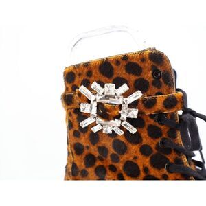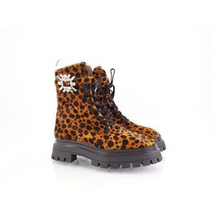 Stuart Weitzman Crystal Nova Bedford Bootie Size 8B Brown Leather Combat Boot
