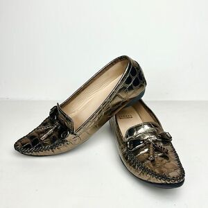 Stuart Weitzman Metallic Croc Embossed Topstitch Moccasin Loafer With Tassel 7,5