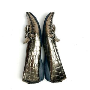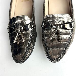 Stuart Weitzman Metallic Croc Embossed Topstitch Moccasin Loafer With Tassel 7,5