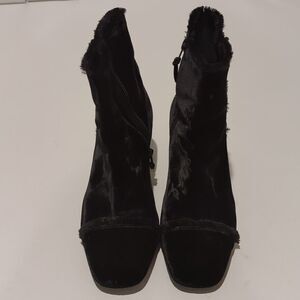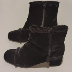 Black velvet with adorable fringe along zipper pull, base of toes and top of bootie