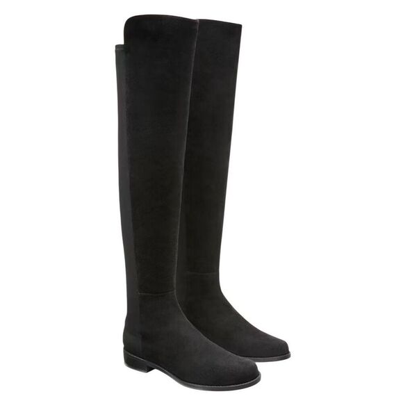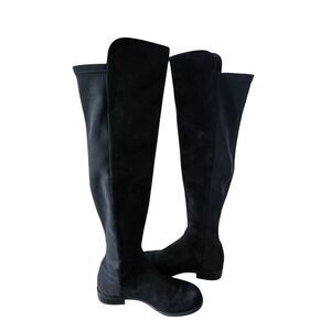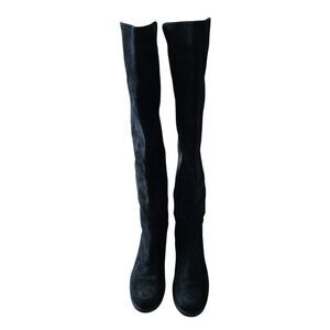 Stuart Weitzman Over The Knee Boots Size 4.5 Black Suede Block Heel