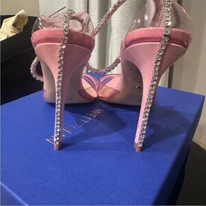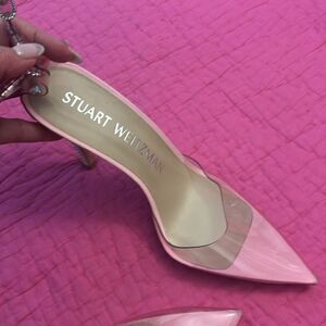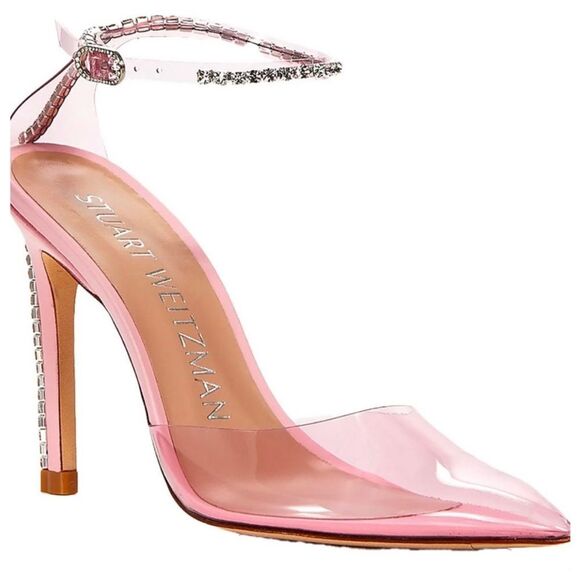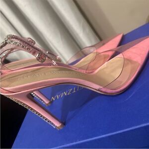 Stuart Weitzman Pink Clear Heels with Rhinestone Strap, US8,5