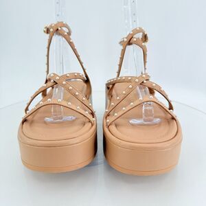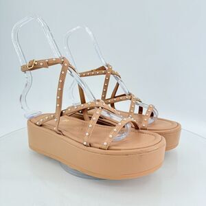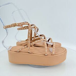 Stuart Weitzman Summerlift Pearl Platform Strappy Sandal Round Toe Beige Sz 6.5