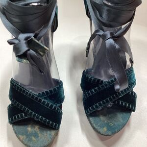 Step out in style with these elegant velvet lace-up heels. The rich green hue adds a touch of sophistication to any outfit. Perfect for any occasion.