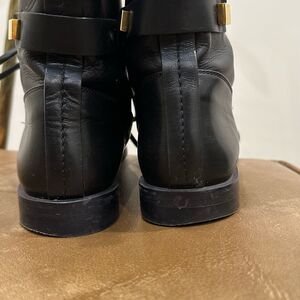Stuart Weitzman Womens Black Leather Ryder Boots Gold Rockstud Lace Up Sz 8W