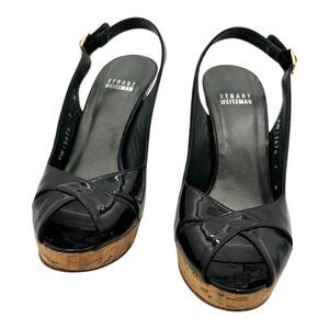 Stuart Weitzman Women's Peep Toe Slingback Platform Heels Black Size 7