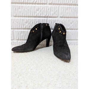 Stuart Weitzman Women's Black & Gold Zip-Up Suede Ankle Bootie Size 8