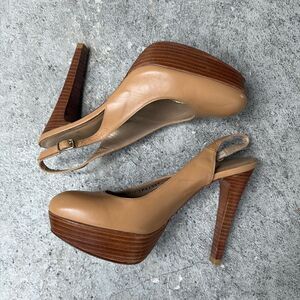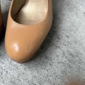 Check out the pictures. These are in great condition. Heel height is 4.75/4.5 platform height is 1.25.