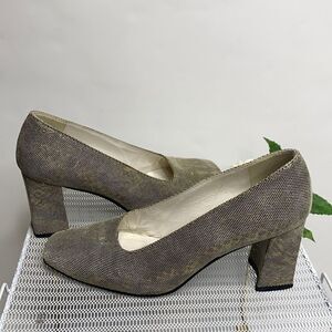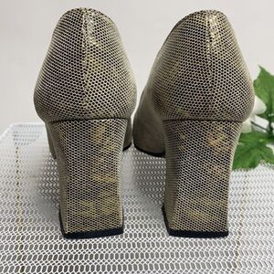 Stuart Weitzman 90s Champagne Gold Faux Snakeskin Pumps w/ Chunky Heels, Size 7