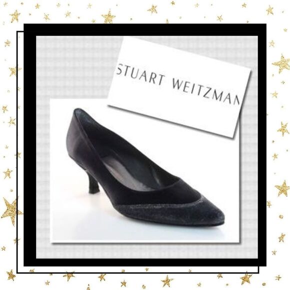 Stuart Weitzman black, slip on, sheer detail, slim heel pumps. Some wear on soles and heels. Size: 5.5